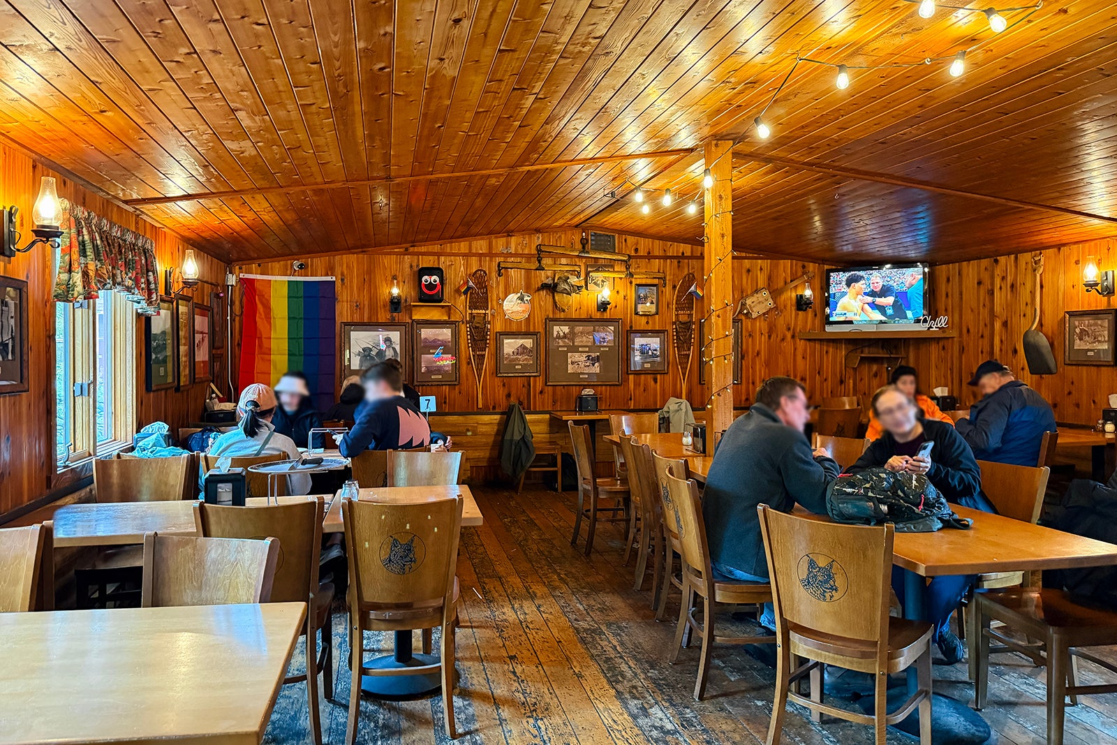 Fanny Q’s is a saloon that’s open for lunch and dinner and serves gastropub-style bites such as jalapeno Alaska crab dip and beer-battered Alaska cod served with tater tots. (The lodge also serves its breakfast buffet here in the mornings.) In the evenings, a piano player performs nightly, and guests gather around the bar requesting popular tunes until late.