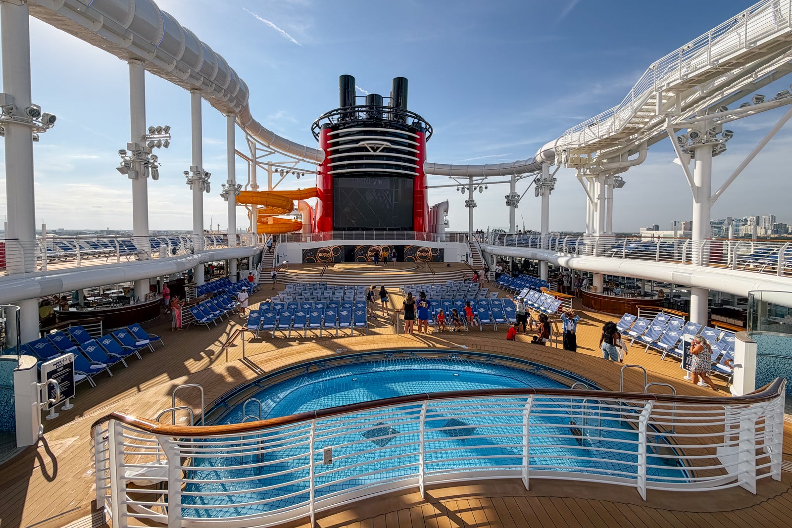 Two nearly identical sister ships, Disney Wish and Disney Treasure, sail short Bahamas cruises and weeklong Caribbean cruises, respectively, from Port Canaveral (near Orlando).