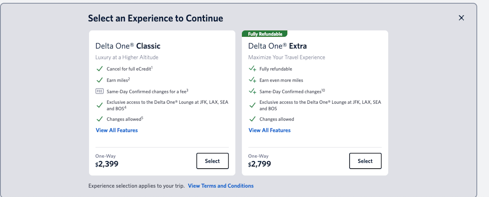 Today, Delta already offers at least two options for virtually all of the seats it sells, regardless of whether you’re flying in coach or up in first class: