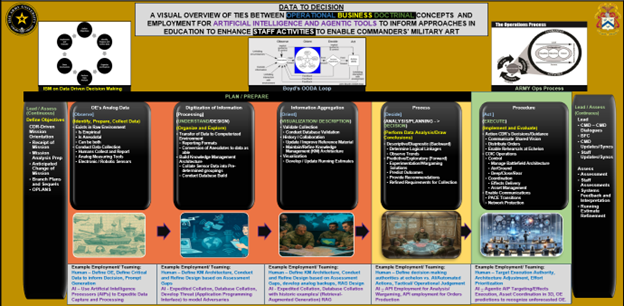 As the Army’s “School for War” the Command and General Staff School (CGSS) is a school for applied warfighting and organizational leader development. It prepares field grade warfighters to plan, synchronize, and execute operations to win at the Joint and Combined Task Force, Corps, and Division levels through a curriculum that integrates data analytics, AI, and “system” thinking. CGSC provides its students with access to modern AI and collaborative tools in recognition of the need for adaptive officers to enable the planning process and provide commanders creative, data enabled solutions to complex challenges. In enabling its graduates, leading warfighters Day 1 at their next role, educational efforts through augmentation by teaming human capability, experience, creativity, and ethics, with machine capacity, the school provides experiences in keeping with its mission to educate and develop graduates who are “agile, innovative, and adaptive leaders within increasingly complex and uncertain environments.”