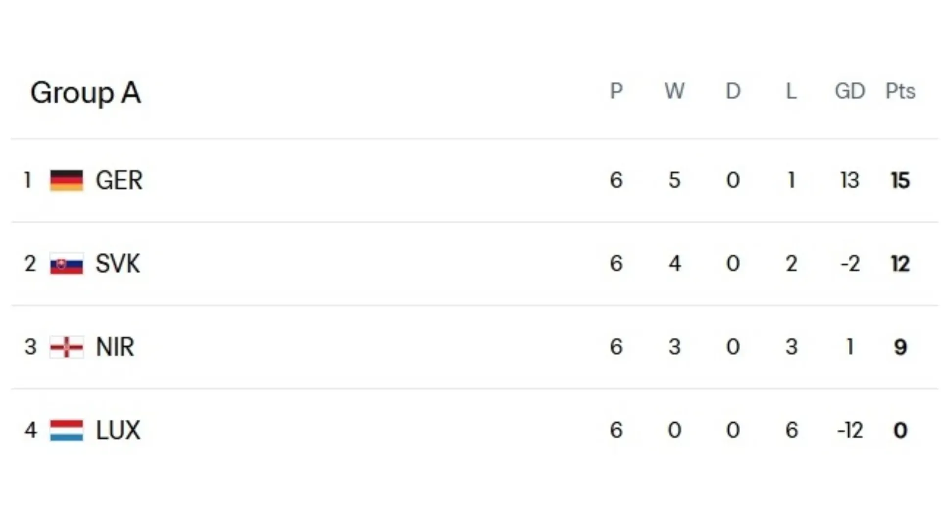 As expected, Germany showed their strength by securing direct qualification with a record of five wins and one loss. Meanwhile, Slovakia will play the playoff in search of one of the four additional spots.
