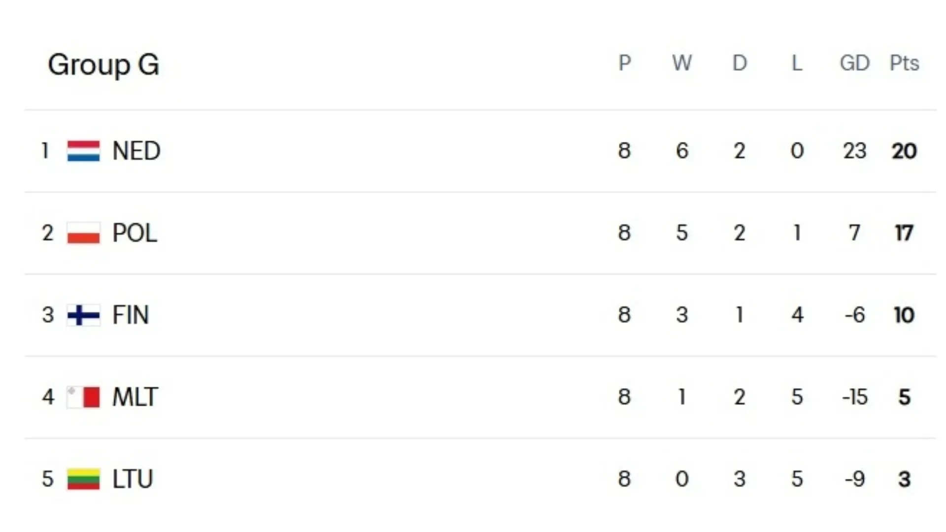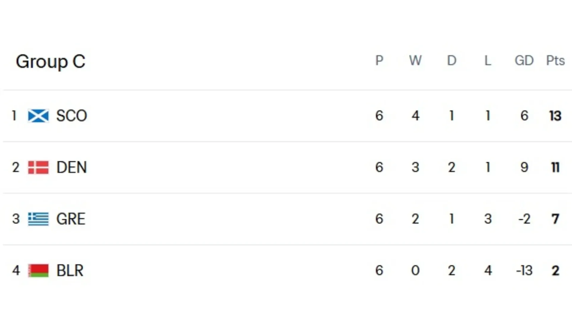 Group C was a fierce battle until the final minute. There, Scotland secured first place after a 4–2 victory over Denmark, relegating their rivals to the March playoff after finishing just two points behind.