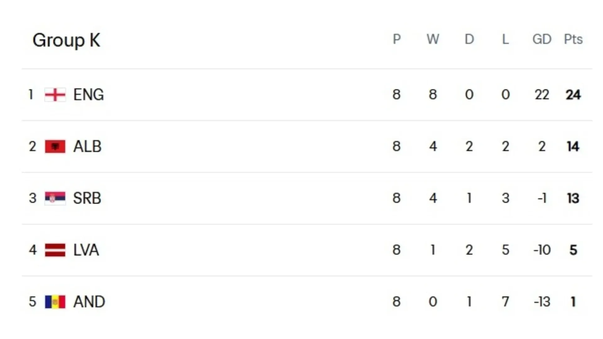 England were the first European national team to secure their place in the World Cup. With a perfect run, Thomas Tuchel’s team dominated their group, building a huge advantage over Albania, their main rival.