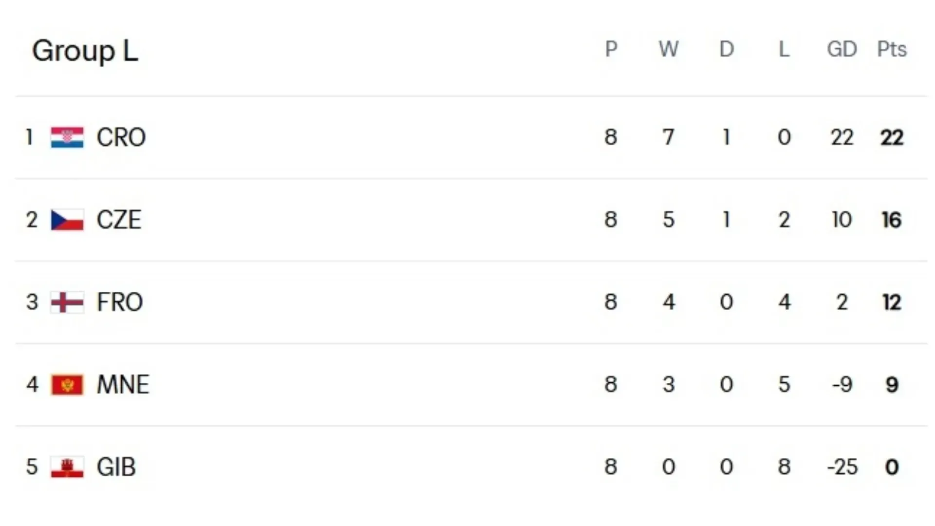 Another national team that went through the qualifiers without issues was Croatia. Led by Luka Modric, they won 7 of their 8 matches and took first place. Far behind came Czechia, who now focus on the March playoff.