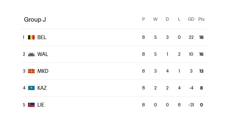 Belgium secured their qualification to the World Cup 2026 this Tuesday with a big win over Liechtenstein, while Wales won a decisive match against North Macedonia to reach the playoff.
