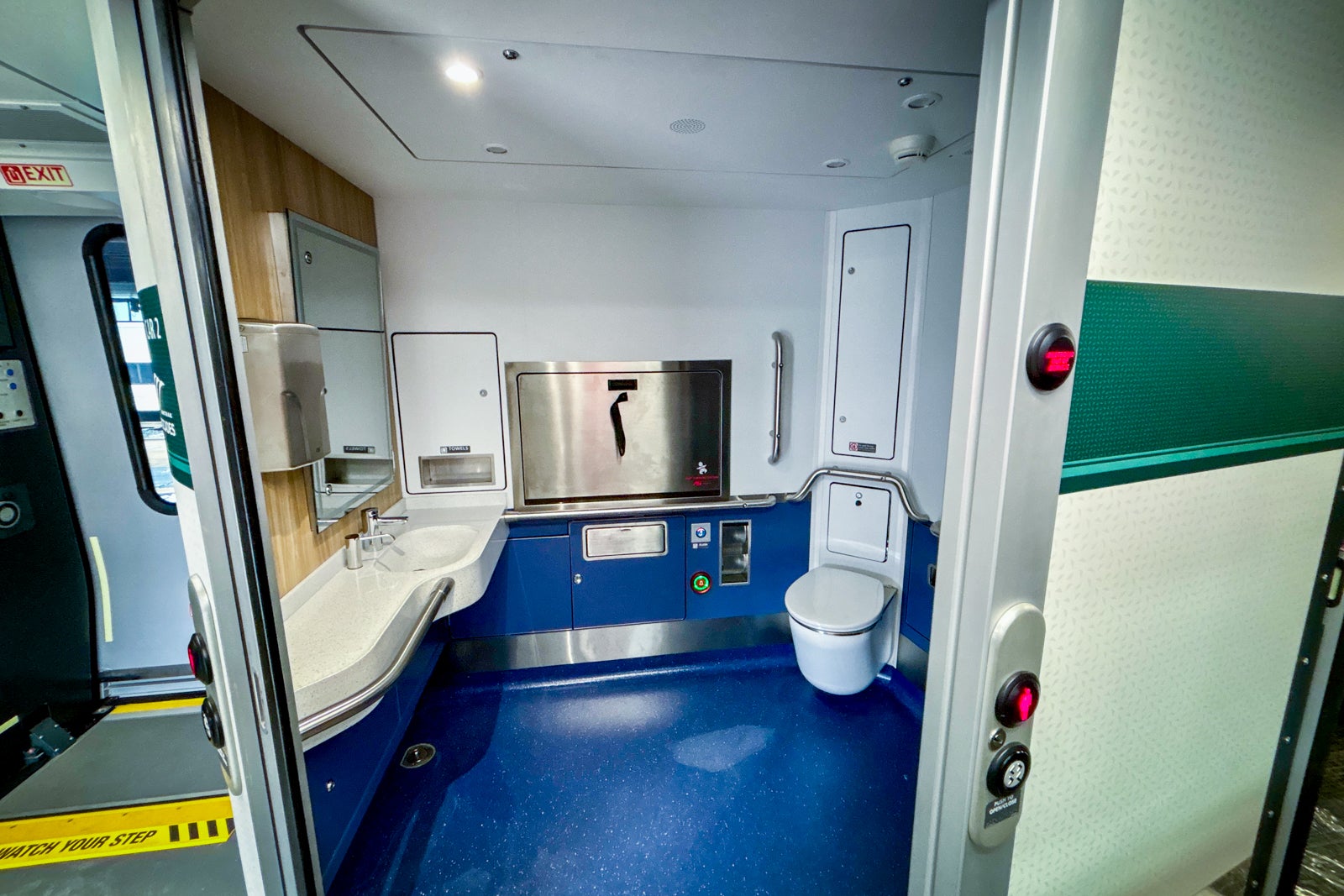 Each Cascades Airo train has one business-class car with seats in Amtrak’s standard 1-2 configuration. Again, there are a mix of stand-alone seats as well as ones with tables throughout the carriage.