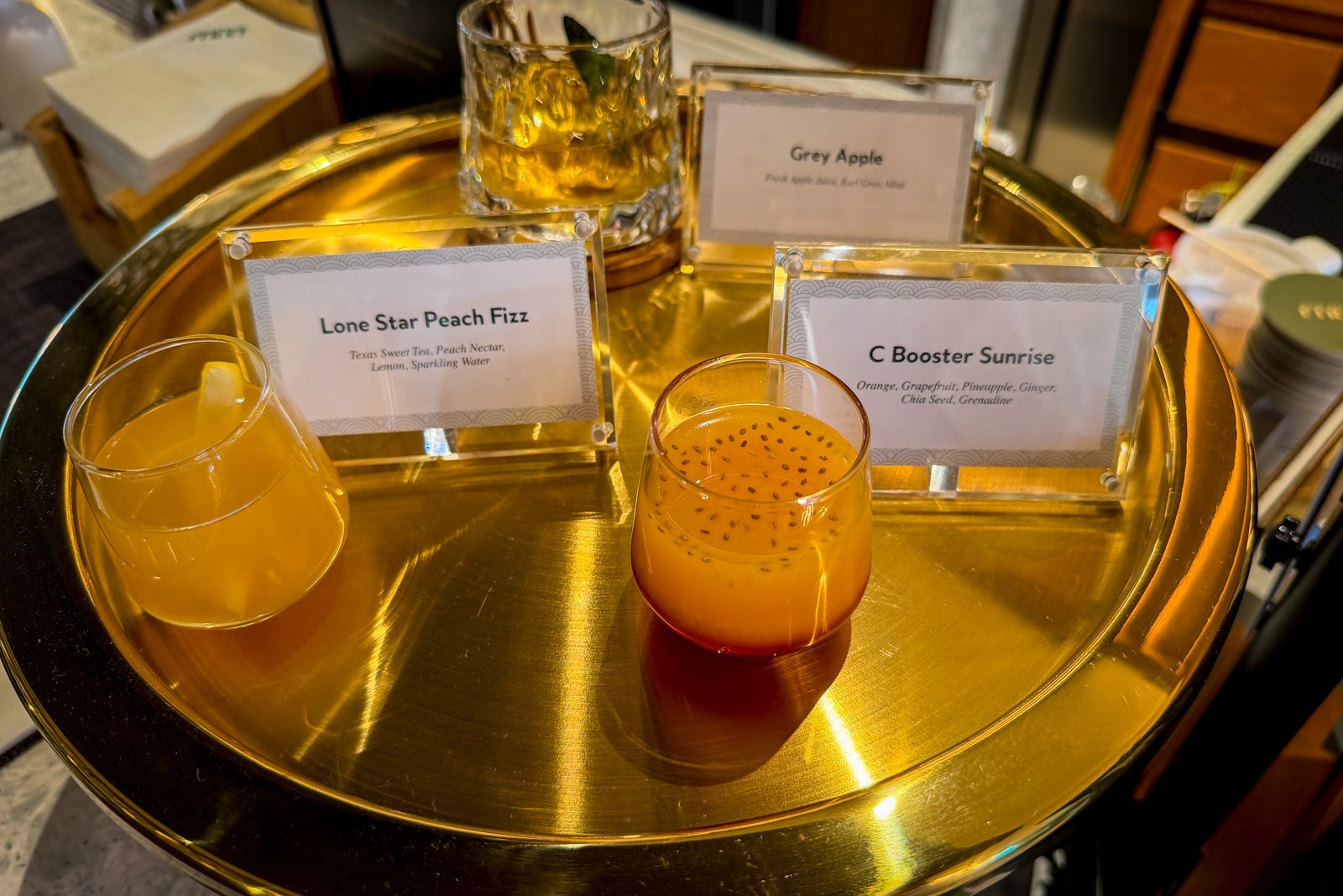 Another example of a nice, unique, higher-end touch is a sampler platter of welcome breakfast drinks available during the morning hours.