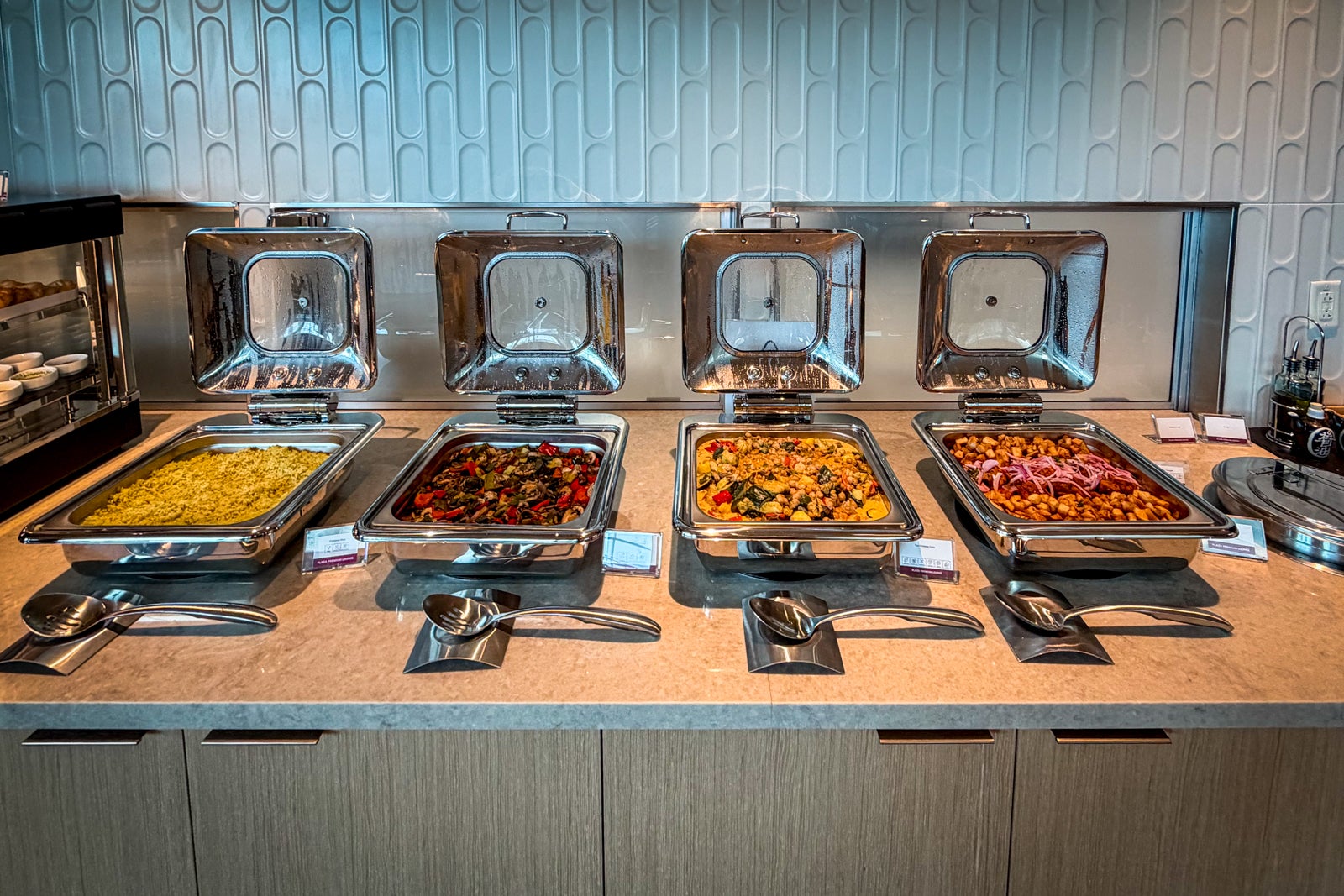 There are 90-plus seats in this Plaza Premium Lounge, so while there were plenty of seating options when I visited during the soft opening, once word gets out, this lounge, like many others before it, may fill up rather quickly. The seats with nearby power outlets, in particular, will likely fill up first, since not all of the lounge’s seating options have them.
