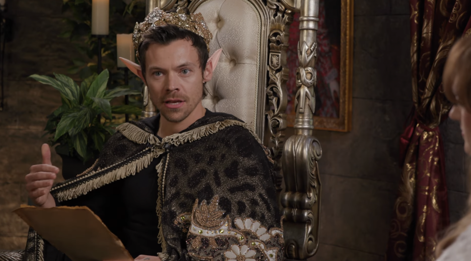 And by “this,” I’m also referring to Harry wearing fake elf ears, a crown and an embroidered cape.