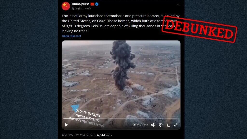 Social media users have shared footage of a spectacular explosion that they claim proves the Israeli military is using a highly lethal new weapon in Gaza: a thermobaric bomb. However, the footage has been taken out of context; it actually depicts a conventional explosion.
