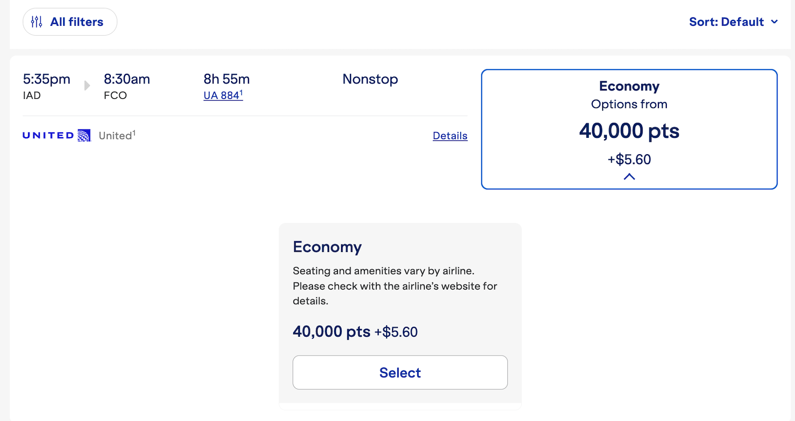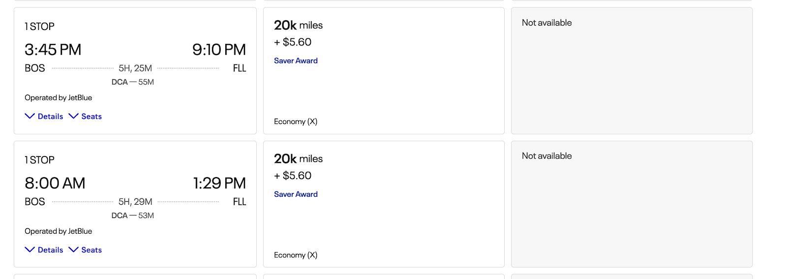 If you want to redeem your MileagePlus miles on a JetBlue flight, search award bookings through United’s website. JetBlue-operated flights will now show up among the options — like this February flight from Boston to Fort Lauderdale, a route JetBlue heavily serves.