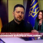 Ukrainian President Volodymyr Zelensky on Tuesday (February 24) addressed MEPs at an extraordinary plenary session.