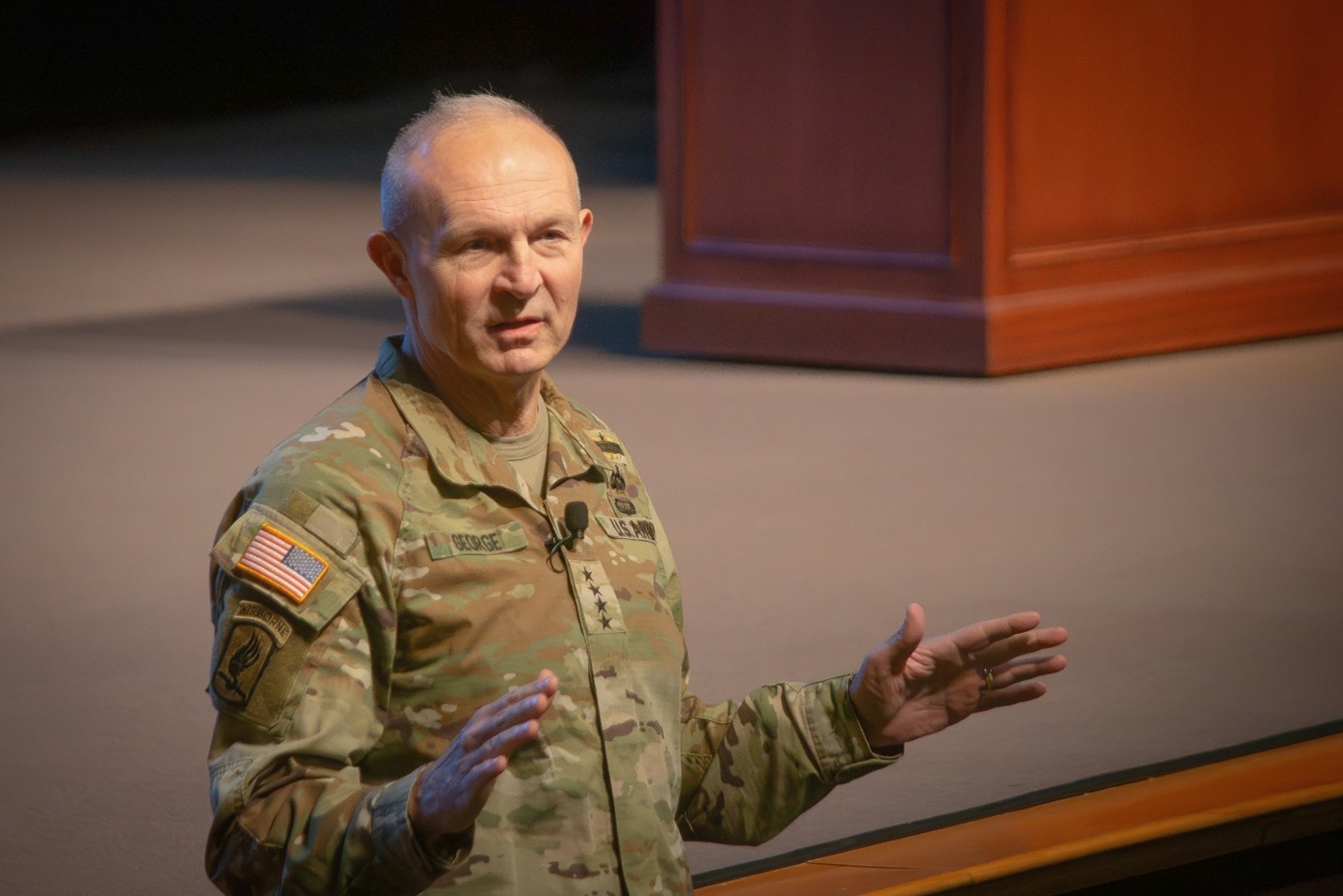 Figure 2: CSA GEN George addresses the CSA-PCC students at Ft. Leavenworth, Kansas. Source: U.S. Army photo by Jim Shea