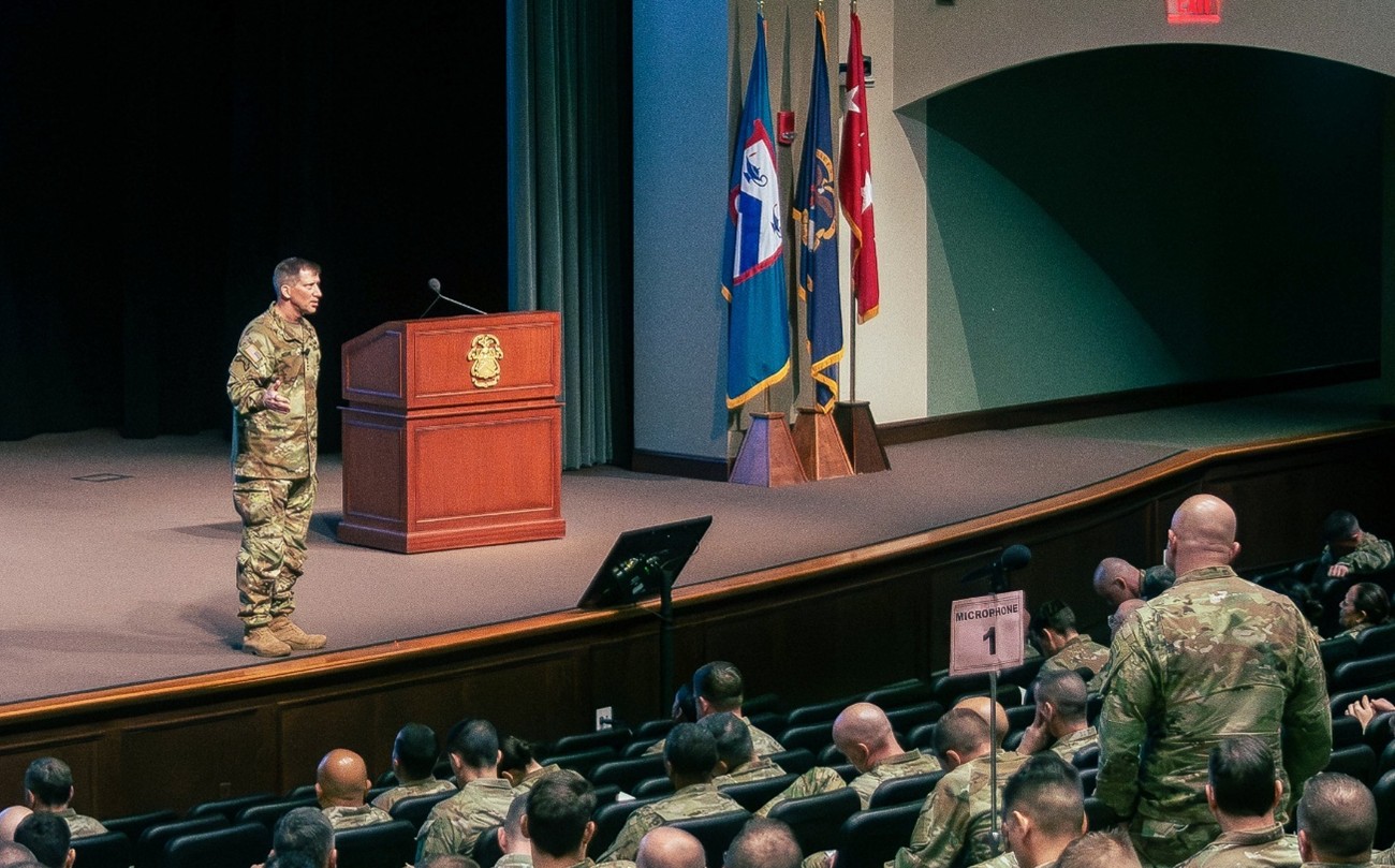 Figure 1: CSA GEN George addresses Students and Spouses. Source: U.S. Army photo by Jim Shea