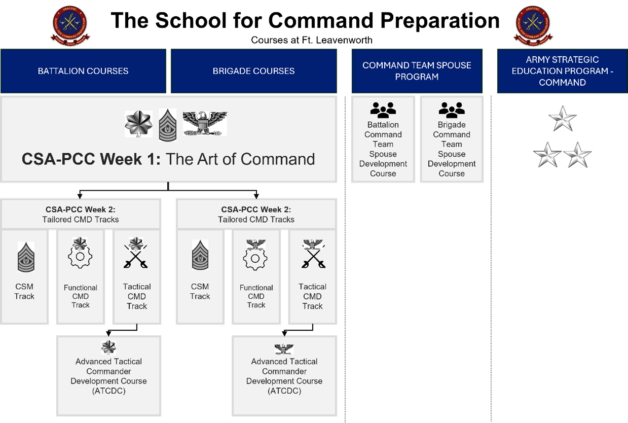 (Note: The School for Command Preparation courses at Ft. Leavenworth include Battalion Command Team courses, Brigade Command Team courses, Command Team Spouse courses, and the Army Strategic Education Program – Command course. Source: School for Command Preparation files.)