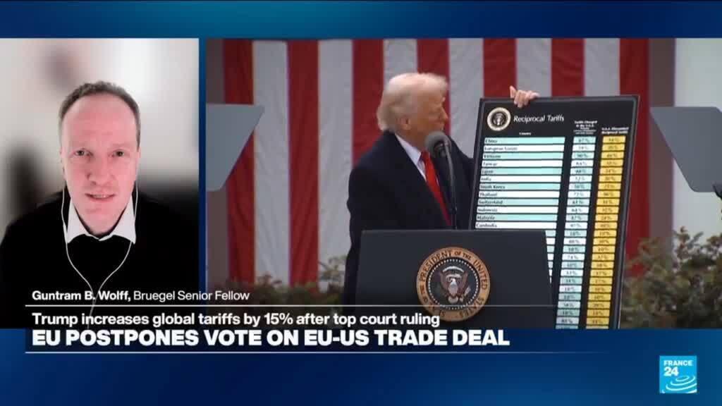 European Union lawmakers Monday put a key trade deal with the United States on hold, demanding clarity after a Supreme Court ruling struck down many of President Donald Trump’s tariffs. Speaking on FRANCE 24, Guntram Wolff, Senior Fellow at Bruegel, says that the new tariffs announced by Trump create a lot of uncertainty for European exporters and may push US consumers to postpone purchases.