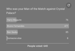 Finally, 1% of people polled felt that another player deserved the player of the match, with Matheus Cunha winning the penalty or Noussair Mazraoui’s strong showing off the bench as potential candidates.