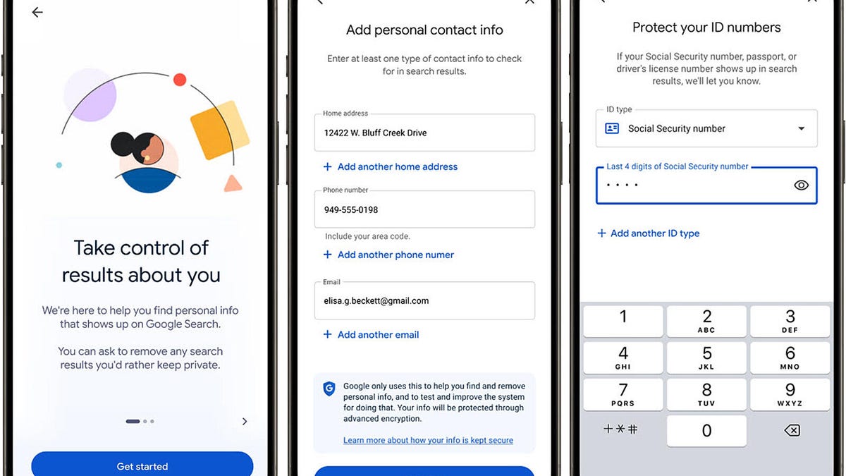 On the web, head to the Results about you hub. In the Google app, select your account photo, then tap “Results about you.” If you’ve never requested the removal of personal info before, select the Get Started button. You’ll be asked to add your contact details, including your name, home address, phone number, and email address. If you’ve used this before, select the gear icon at the top to modify any information you’ve already added.